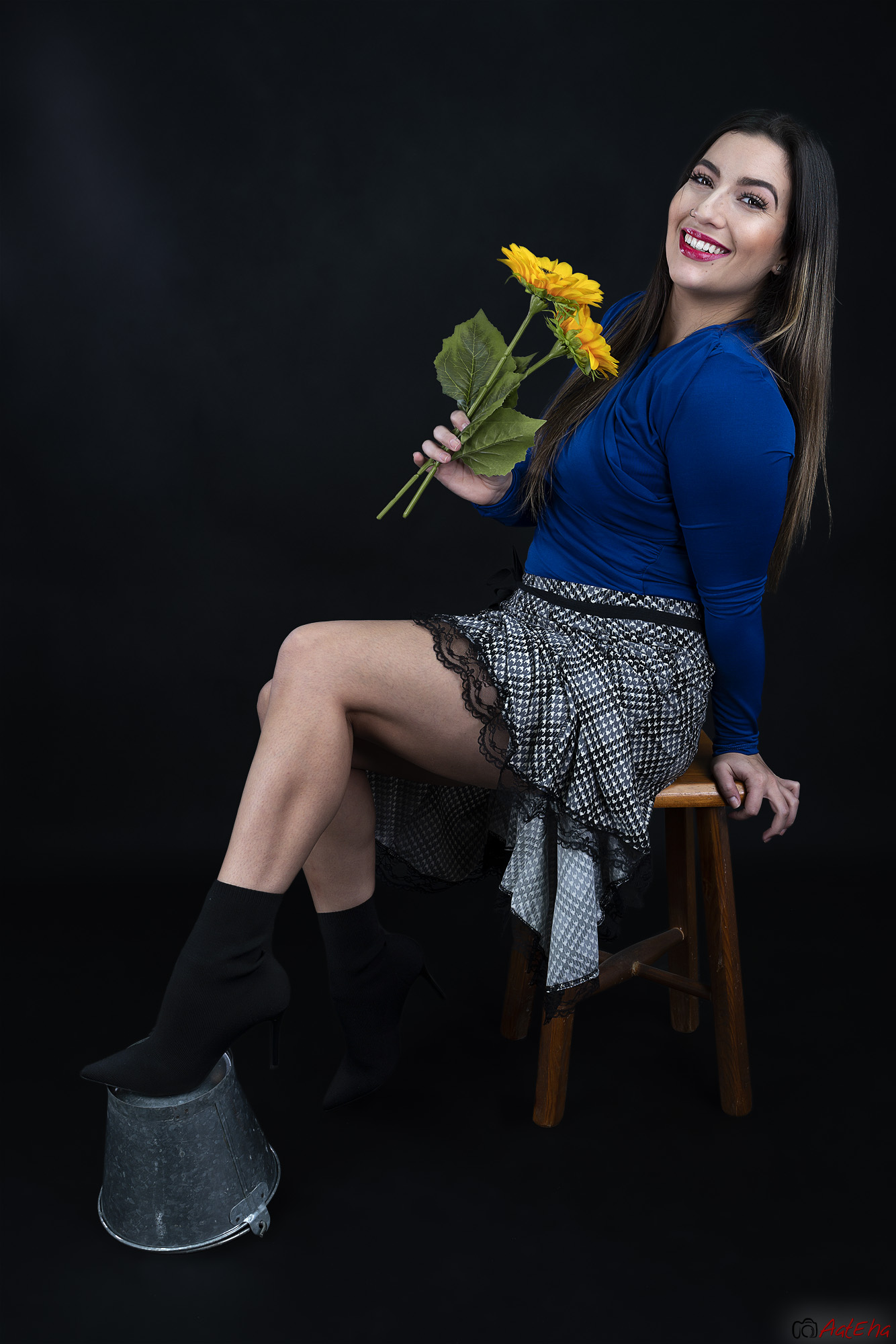 Sesión de fotos en estudio junto a la modelo Oreana Spena y unas cuantas flores. 2022.